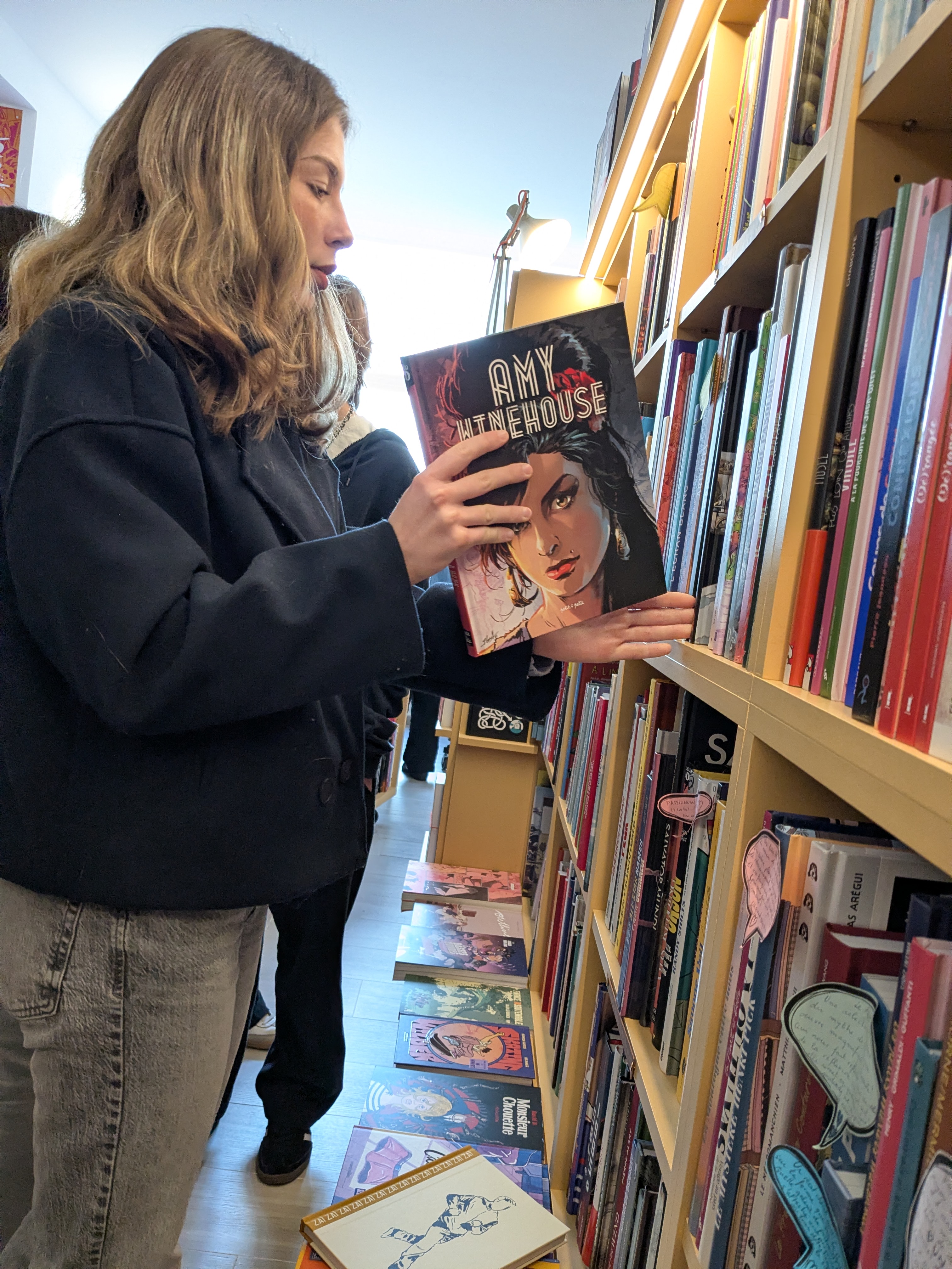 Nous avons pu également commander si l’on voulait un livre qui n’était pas dans la librairie directement. Nous avons passés 40min dans la boutique pour avoir le temps de tout regarder et de pouvoir choisir. C’est impressionnant de voir autant de livres avec autant de diversité. Nous avons tous pris un ouvrage en fonction de nos goûts personnels, certains ont pris des livres documentaires, d’autres des mangas, … Par exemple : « Copain des bois » de Renée Kayser - parce qu’il a énormément d’infos sur le monde qui nous entoure ou « Comment rater sa vie sa vie » de Petit Pieds- parce qu’il avait l’air drôle.